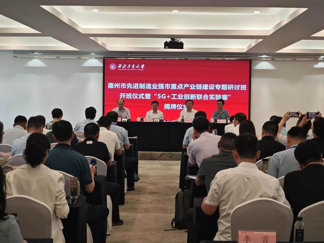 詹浩副校长代表学校对陈市长及德州市、山东联通各位领导、企业家一行来校进行产学研对接交流并举办专题研讨班表示热烈欢迎,并向德州市委市政府、山东联通给予西工大长期的关注和大力的支持,表示衷心的感谢。随后,詹浩副校长介绍到,西工大坚持三航特色与总师文化,已成为智能制造、工业互联网与高端装备制造相关领域高层次人才培养与科技创新的基地;2023年6月,陈市长带领工信局、山东联通同志到西工大调研和商谈产学研合作,推动三方签署产业合作协议,并建设“5G+工业创新联合实验室”。最后,詹浩副校长希望以本次揭牌活动为契机,在基础研究、工程应用等为制造业的数字化转型与智能化升级提供强有力的支撑,推动先进制造业和现代服务业、数字经济的深度融合及高质量发展。