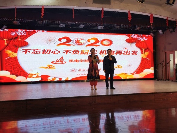 2020年1月11日下午,开云kaiyun登录入口在健翔楼举办了一年一度的教职工迎新春联欢会,五楼多功能大厅大型LED屏上绚丽的显示出今年联欢会的主题是“不忘初心,不负韶华,机电再出发”。会场被布置得的错落有致,充满了欢乐、喜庆的气氛。学院工会的工作人员在入口处热情地欢迎学院的教职员工,并为大家发放进门礼和抽奖奖券。