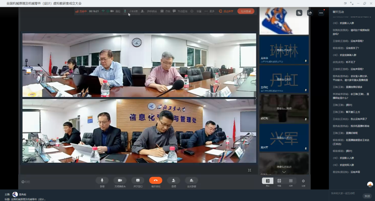 最后,上海交通大学郭为忠教授作以关于机械原理与机械设计课程发展的一点认识为题报告,重庆大学李良军教授作以机械设计(基础)课程教学评价及在线试题库建设与应用为题报告,大连理工大学王丹虹教授作工程图学课程虚拟教研室建设方案与思路的报告,引发了与会一线教师的广泛在线讨论和强烈反响。