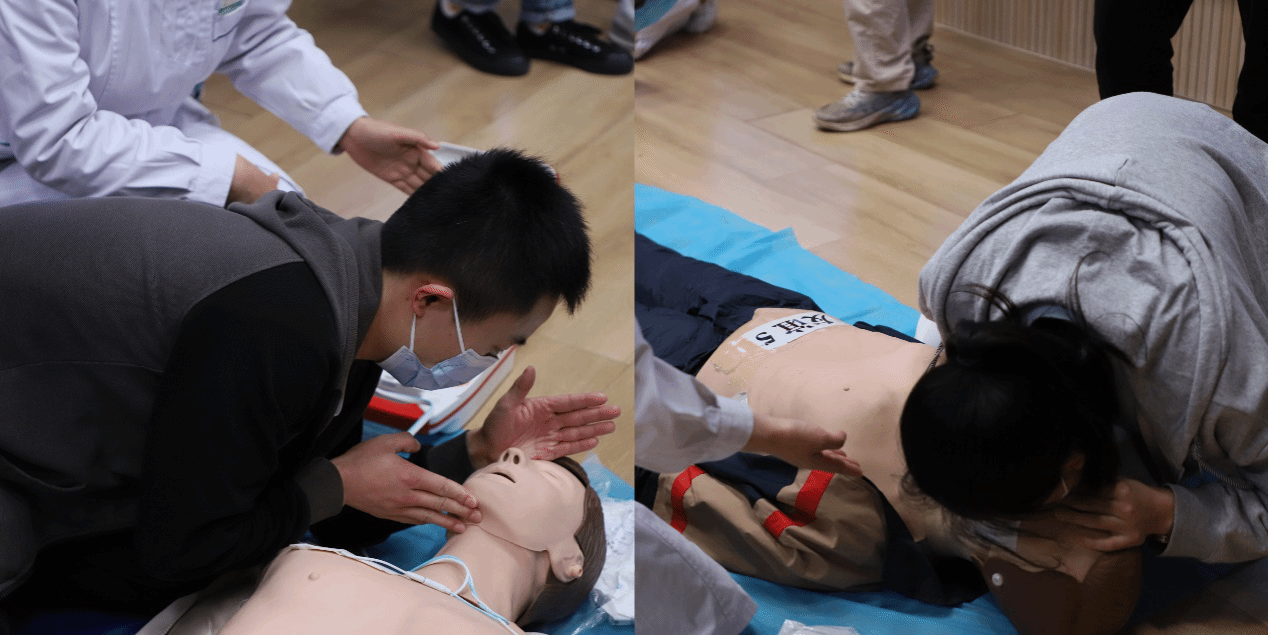 活动最后,同学们根据讲座学到的知识,在医生的指导下使用模拟人进行急救方法的练习和巩固。大家积极踊跃尝试,认真练习,耐心请教,一边演练一边互相交流急救要领,大家纷纷表示,经过实际操作,自己对急救技能的掌握更加牢固了。