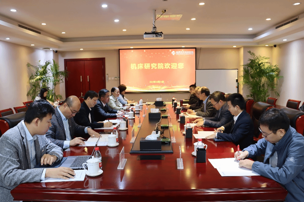 通用技术机床研究院院长高长才详细介绍了研究院的成立背景、历史沿革、主要科研情况以及在多个科研领域的合作意向。副院长罗明介绍了学院调研组人员构成以及学院在学科布局、科研方向等方面的基本情况,并与研究院探讨了双方在科学研究、人才培养等领域的合作计划。接着,双方人员就科研合作以及人才培养等问题进行了深入的研讨和交流。
