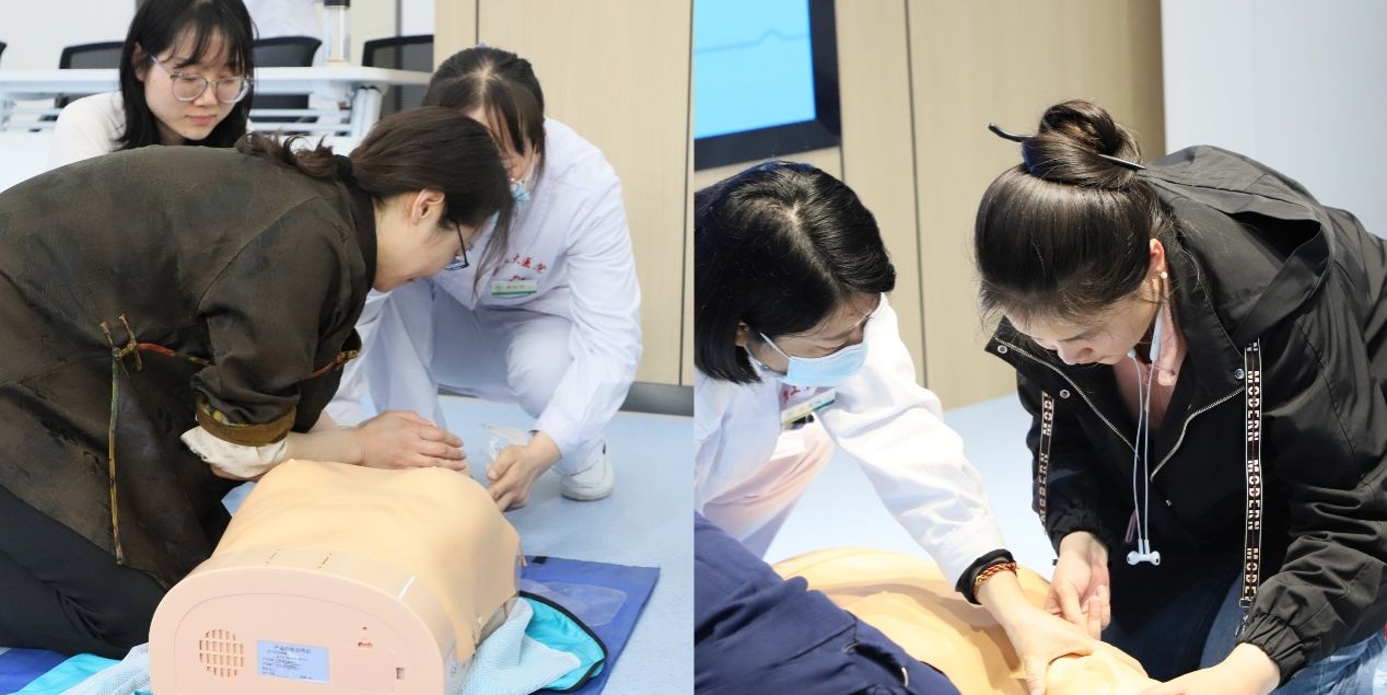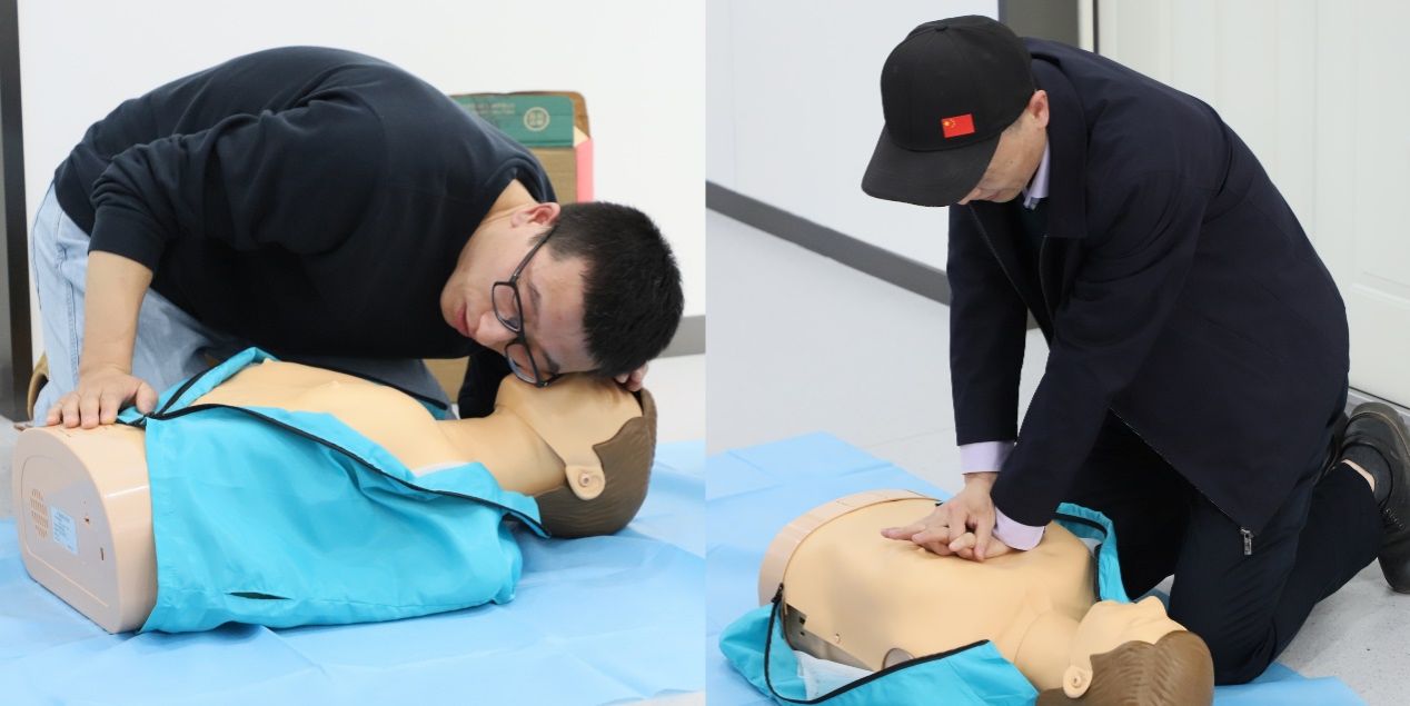 最后,在医护人员的指导下,教职工们尝试进行人工呼吸、心肺复苏和AED的使用操作练习。大家认真学习,积极提问,各位教职工纷纷表示通过实际操作加深了自己对急救知识的理解,巩固了急救技能。