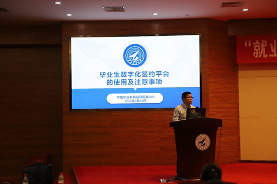 会上,樊文迪老师以毕业生的毕业去向为契机,以毕业生数字化签约平台的使用为主线,详细讲述了毕业生的签约流程,以及在签约过程中需要注意的事项,最后强调同学们务必以认真慎重的态度在平台上进行相关操作。