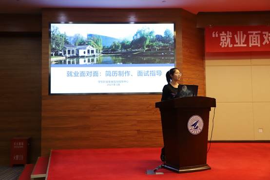 李慧老师从专业的角度对求职过程中的简历制作和面试展示等进行了讲解,将简历和面试的目的概括为说明经历、展示能力、证明岗位胜任力三大部分,同时对求职简历的逻辑架构、招聘简章的解读、面试问题的回答等一一进行了解答。