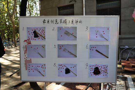 随着摘柿子活动的进行,创意采摘工具的评选也同时开始。赛前,开云kaiyun官网学子们化身手工艺大师,从设计图纸到手工制造,用聪明才智创造各种神器,采用废旧材料、“十八道”工序精心制作了环保的采摘工具。