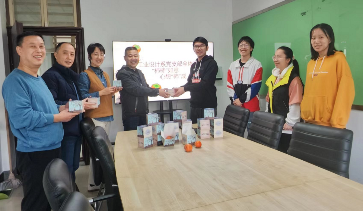 学生党支部代表向工业设计系党支部老师赠送柿子