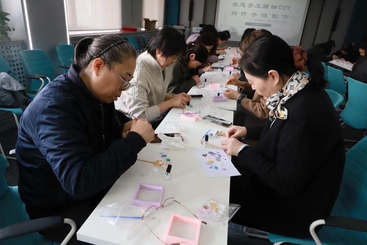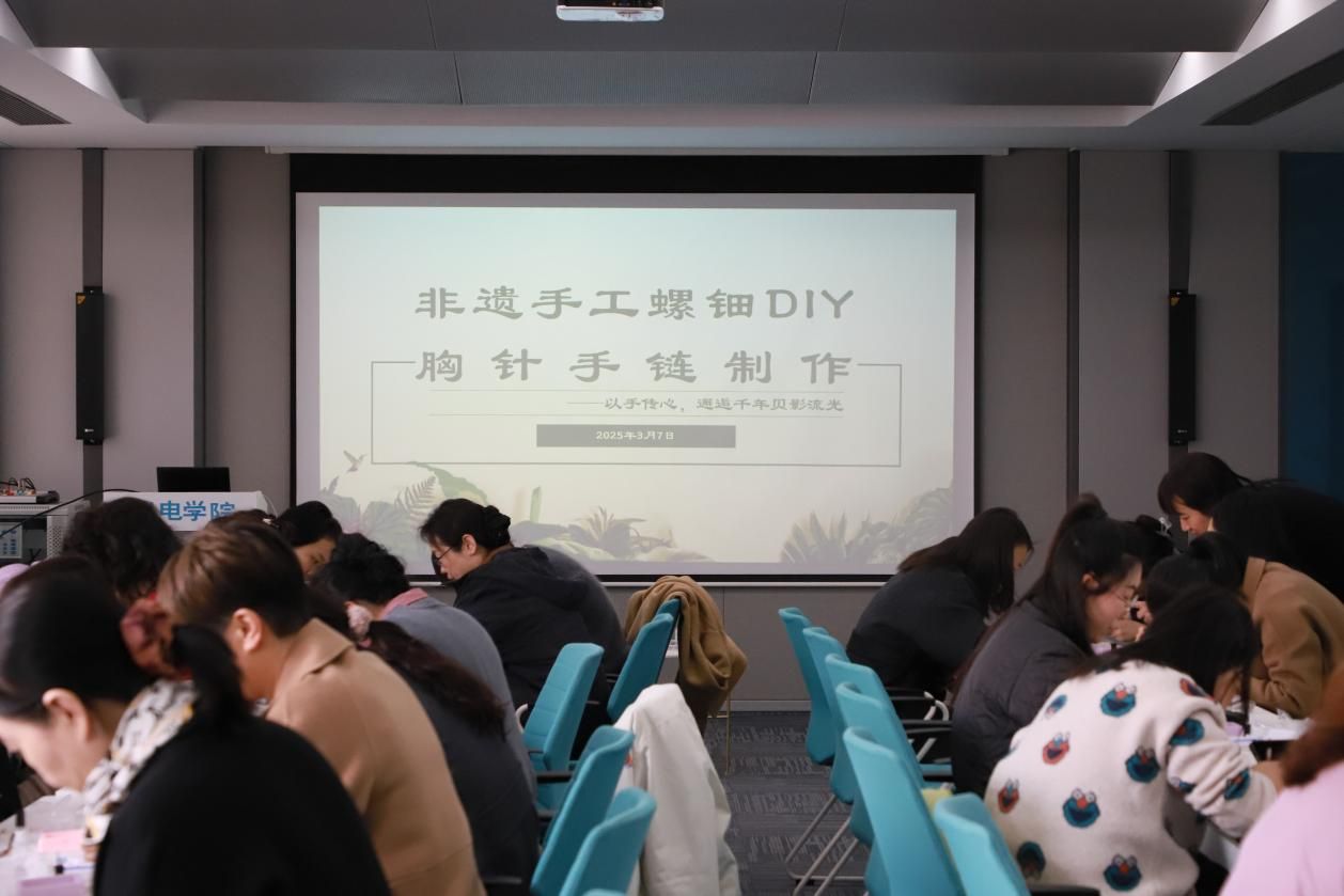 3月7日,开云kaiyun登录入口工会精心策划"以手传心,邂逅千年贝影流光"主题庆祝活动,为女教职工送上别样节日祝福。在B410教室内,30余名女教师化身"非遗传承人",认真制作螺钿胸针手链。