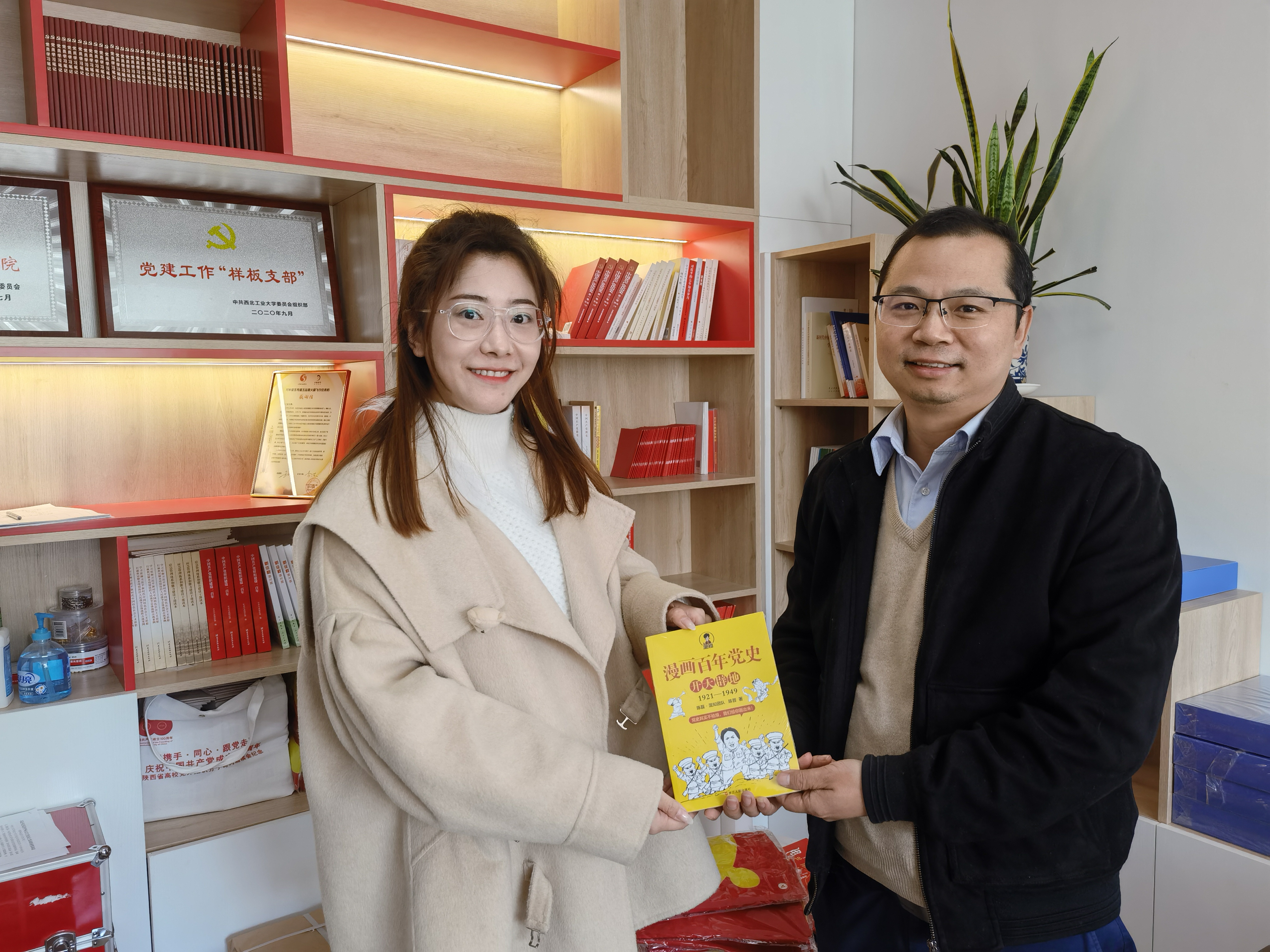 为推动党史学习教育走深走实,深入推进“我为群众办实事”实践活动,营造浓厚的党史学习氛围,开云kaiyun登录入口党委及工会共同开展“赠书促学习·书香润初心”主题系列活动,为学院师生发放由工业设计系毕业生陈磊编著的《漫画百年党史》党史学习书籍,并受到师生广泛好评。