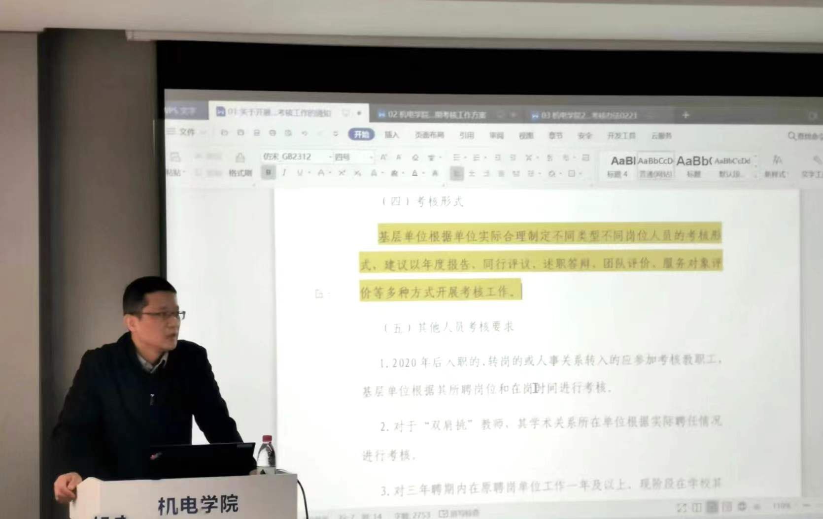 院长常洪龙先介绍了学校对教职工相关工作的要求,汇报了《开云kaiyun登录入口2020-2022年岗位聘任聘期考核工作方案(讨论稿)》和《开云kaiyun登录入口2020-2022年学院聘期考核任务完成度量化计算细则(讨论稿)》等文件,从政策导向、评判规则等方面对教学科研岗和科研岗的部分进行了详细说明。副院长常智勇对实验岗的部分进行了汇报讲解。