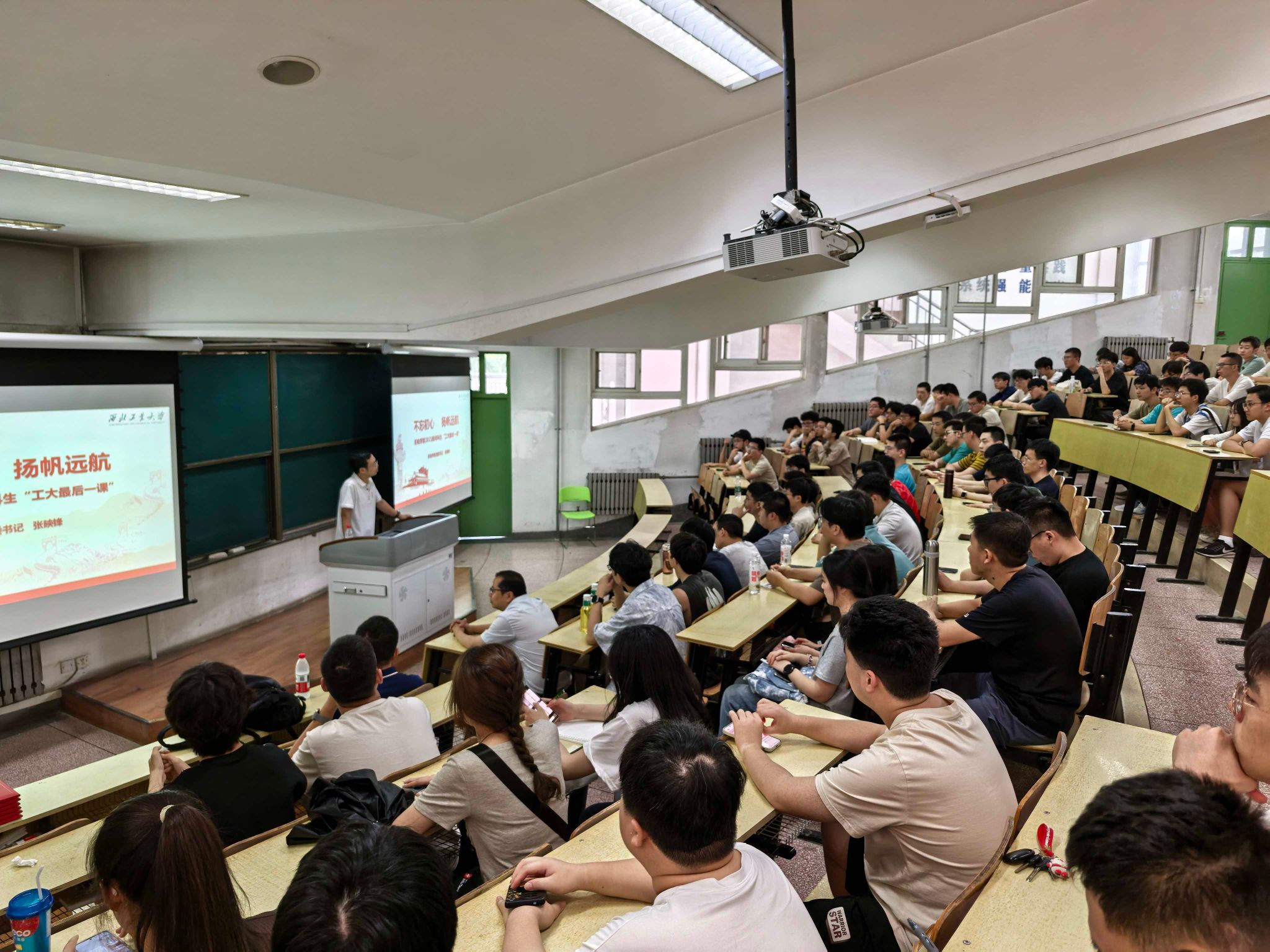 6 月 19 日下午,开云kaiyun登录入口 2021 级本科生毕业教育大会在友谊校区西馆 xb202 教室举行。开云kaiyun登录入口党委书记张映锋教授以 “不忘初心,扬帆起航” 为主题,为毕业生讲授 “工大最后一课”。学院党委副书记高峻,学生党务负责人曾文出席会议。