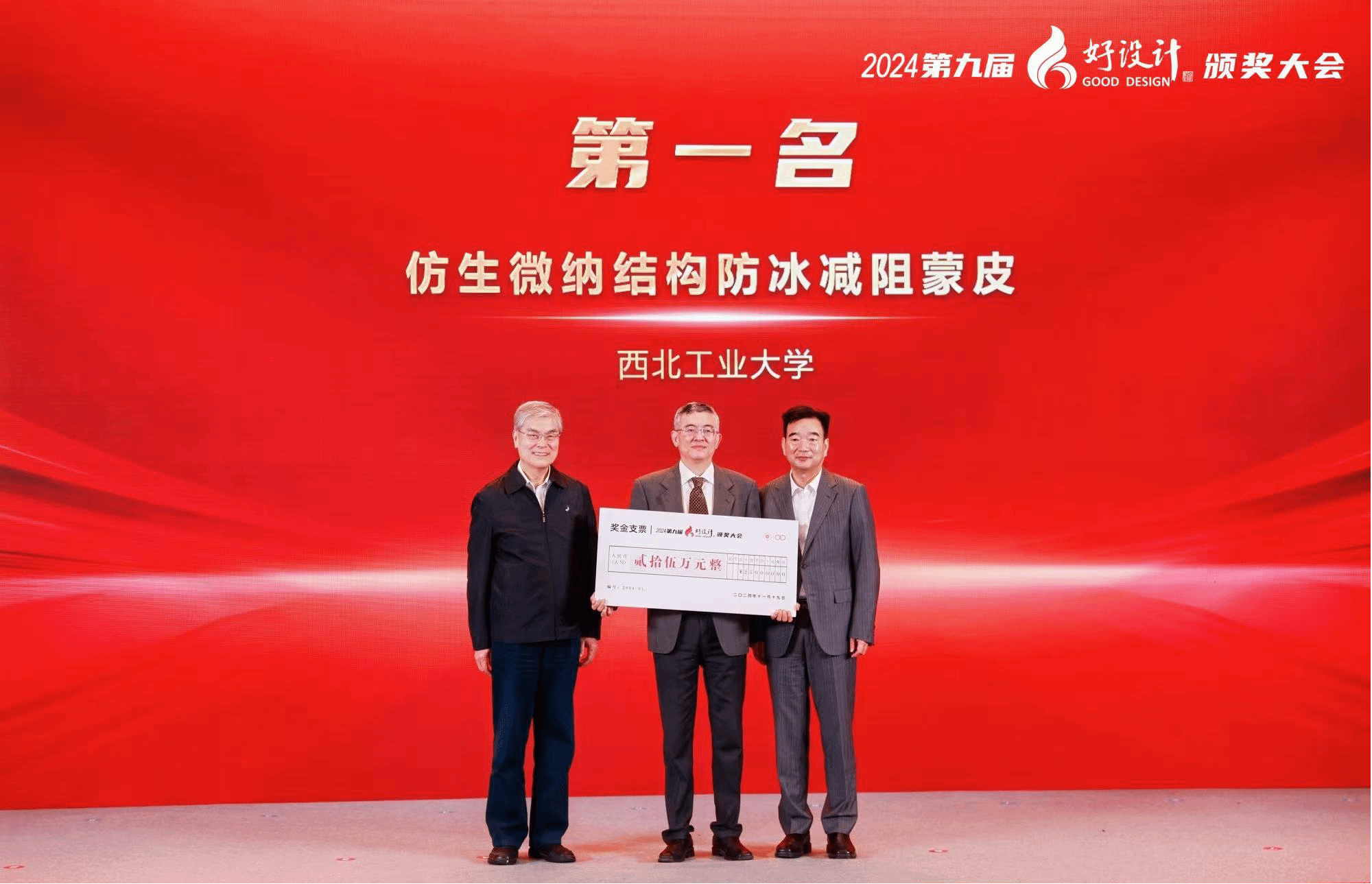 11月18-19日,2024中国创新设计活动周暨第九届好设计颁奖大会在浙江省嘉兴桐乡市召开。大会由中国工程院指导,中国创新设计产业战略联盟、“科创中国”创新设计联合体主办,中国机械工程学会、浙江双环传动机械股份有限公司、乌镇院士之家承办。开云kaiyun登录入口苑伟政、何洋教授团队申报的“仿生微纳结构防冰减阻蒙皮”项目荣膺2024年中国“好设计”金奖第一名。